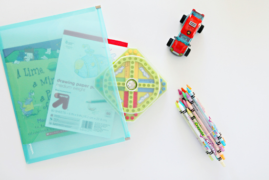 Speaking of cars and switching the subject quickly, larger plastic pouches are durable and fabulous for keeping a few fun things together in the car for kiddos. I find that a book, drawing pad, crayons, small game and small toy are plenty to keep my boys entertained for a couple of hours in the car. Except when they have hot cocoa and donuts for breakfast... then nothing prepares me for that kind of trip... not that I would know... just a fair assumption.
