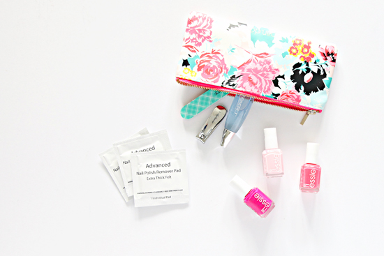 I always love to paint my nails, but it seems I only do it as a passenger in the car (very carefully). A few nail polish wipes, file, clippers, cuticle oil and polish are the supplies typically found in my nail care kit.