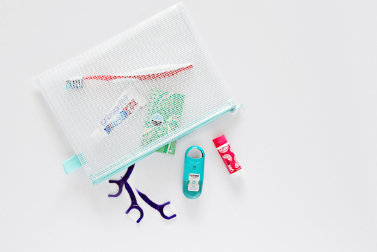 If I am planning to be out of the house for the entire day, I like to have the option to brush my teeth at some point. A washable pouch with a toothbrush, toothpaste, flossers, gum, breath spray and chapstick, keep my mouth clean and happy and ready for a make-out session. Just kidding - seeing if you are still with me. But I am sure the person I am hanging with for the day is happy my breath doesn't smell like pico de gallo after a delish meal.